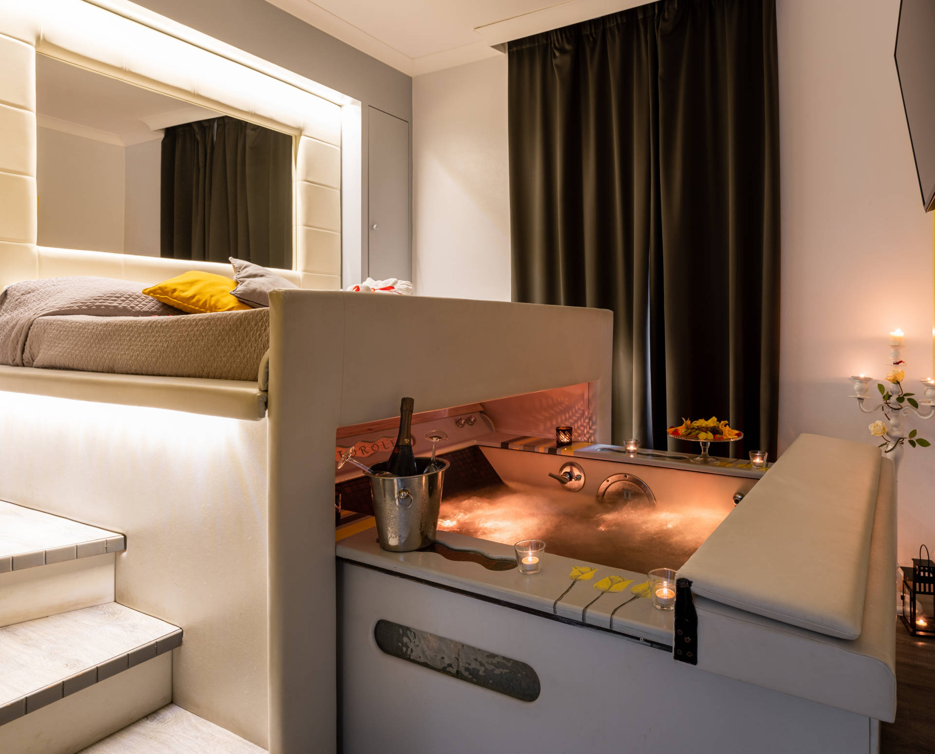 Prenota ora per risparmiareAppena entrati nella vostra Suite troverete un caloroso aperitivo a lume di candela, con vivaci bollicine di un ottimo Champagne e frutta fresca.