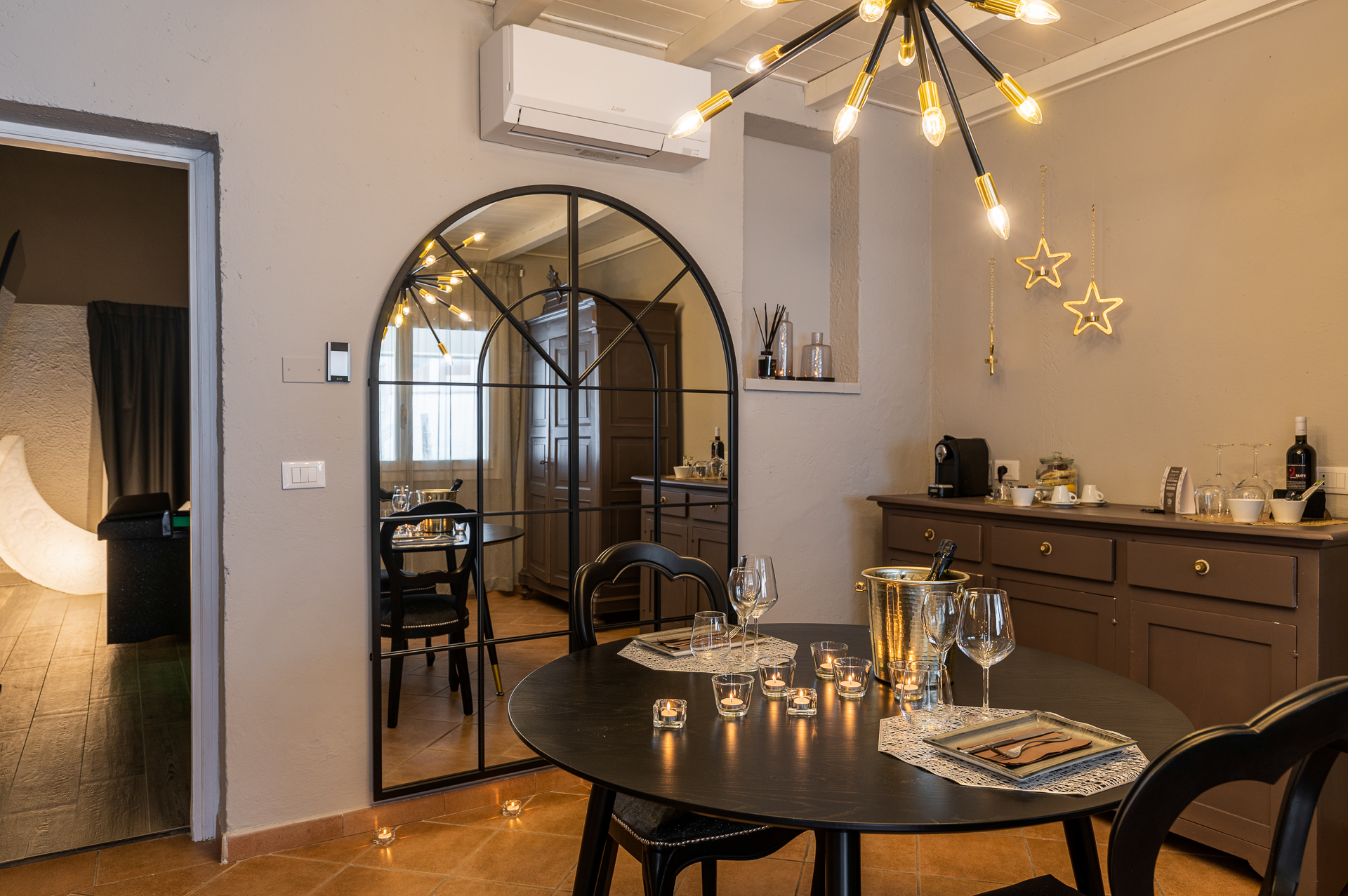 Una Suite avvolgente e calda, ammaliante e raffinata, per veri sognatori, per coloro che alzando gli occhi al cielo e guardando le stelle, esprimono desideri d’amore… Una Suite dal carattere onirico, che donerà un po’ di magia alla tua esperienza romantica…