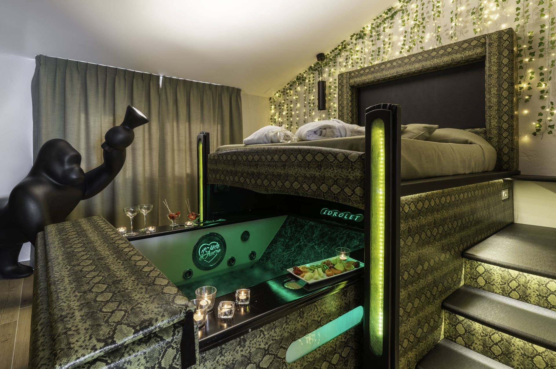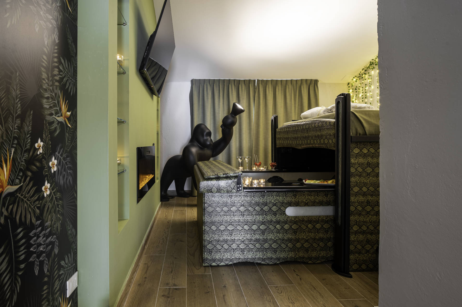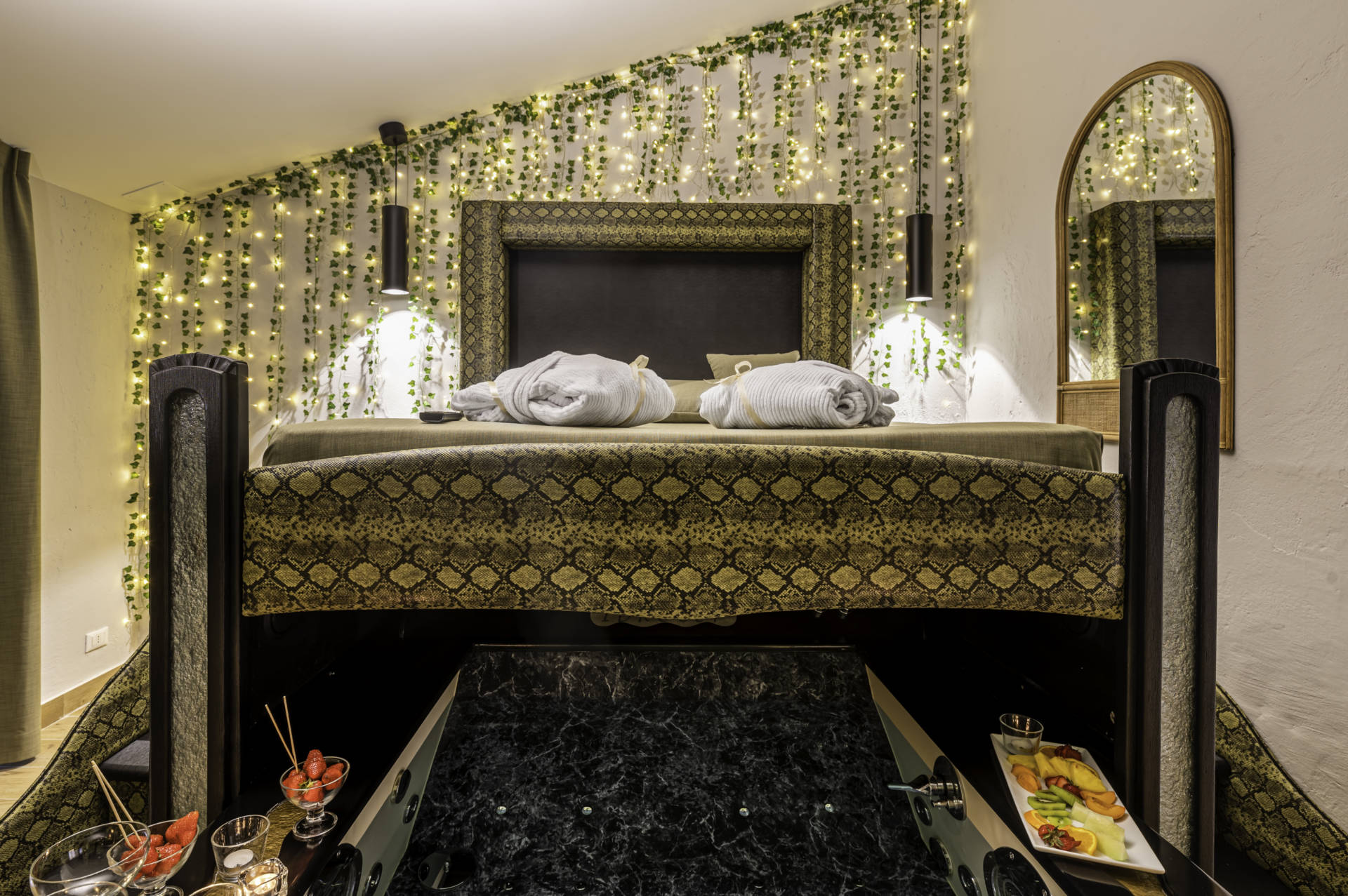 Dionysus, god of nature and mystical delirium, lives and identifies himself in this eccentric suite. With its vibrant colors and shades, it wins you over and surprises you at first glance … It arouses amazement and wonder, and envelops you in an embrace in which you can rediscover the instinct, the origin and the meaning of your love.