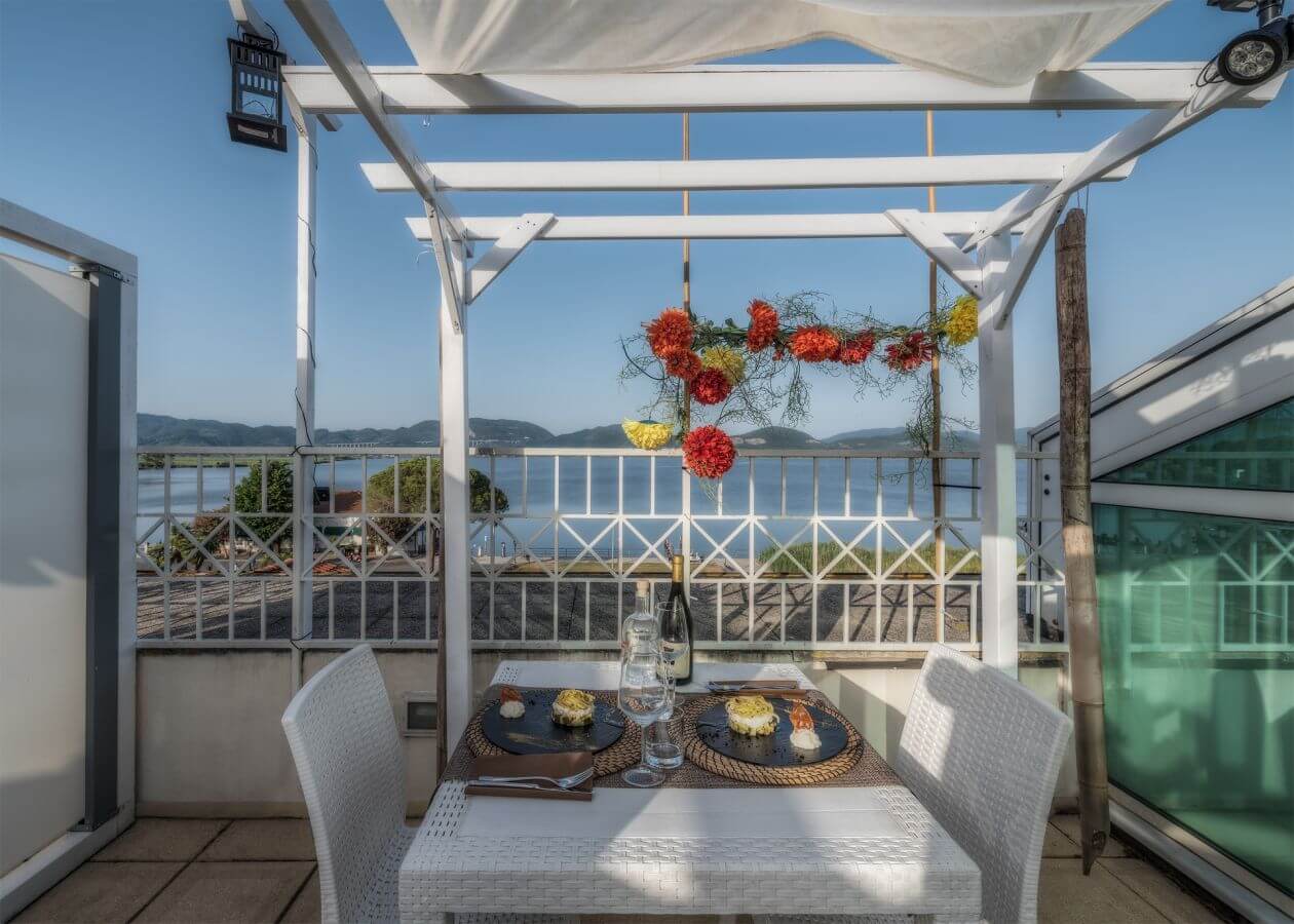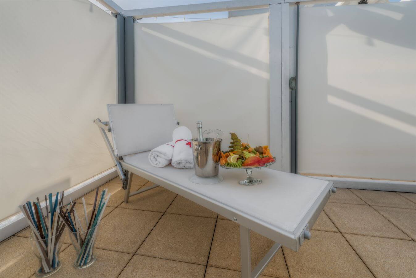 In the relax area you’ll find: two sun loungers for your relax and an area with table where to enjoy an aperitif or a romantic dinner.