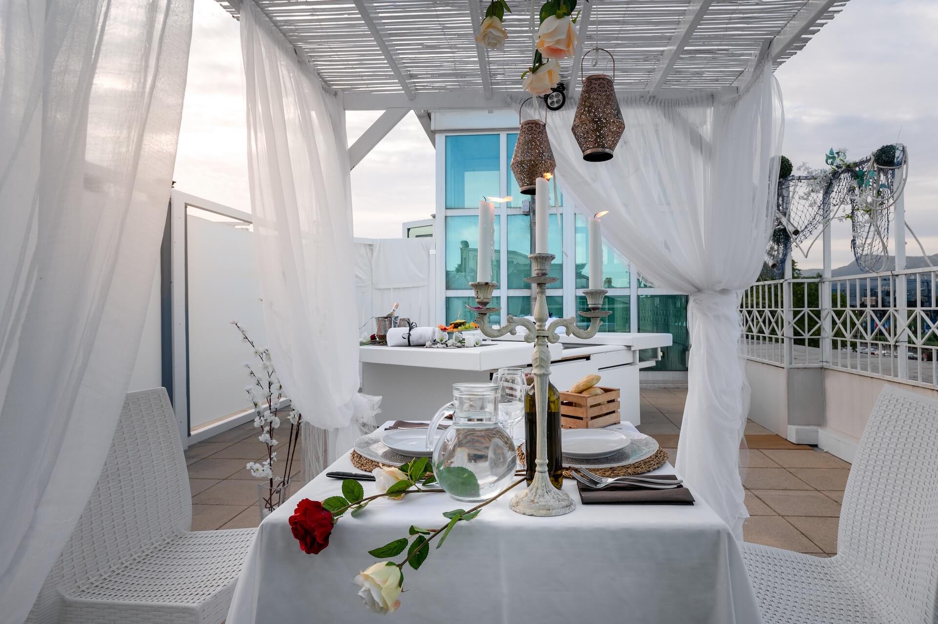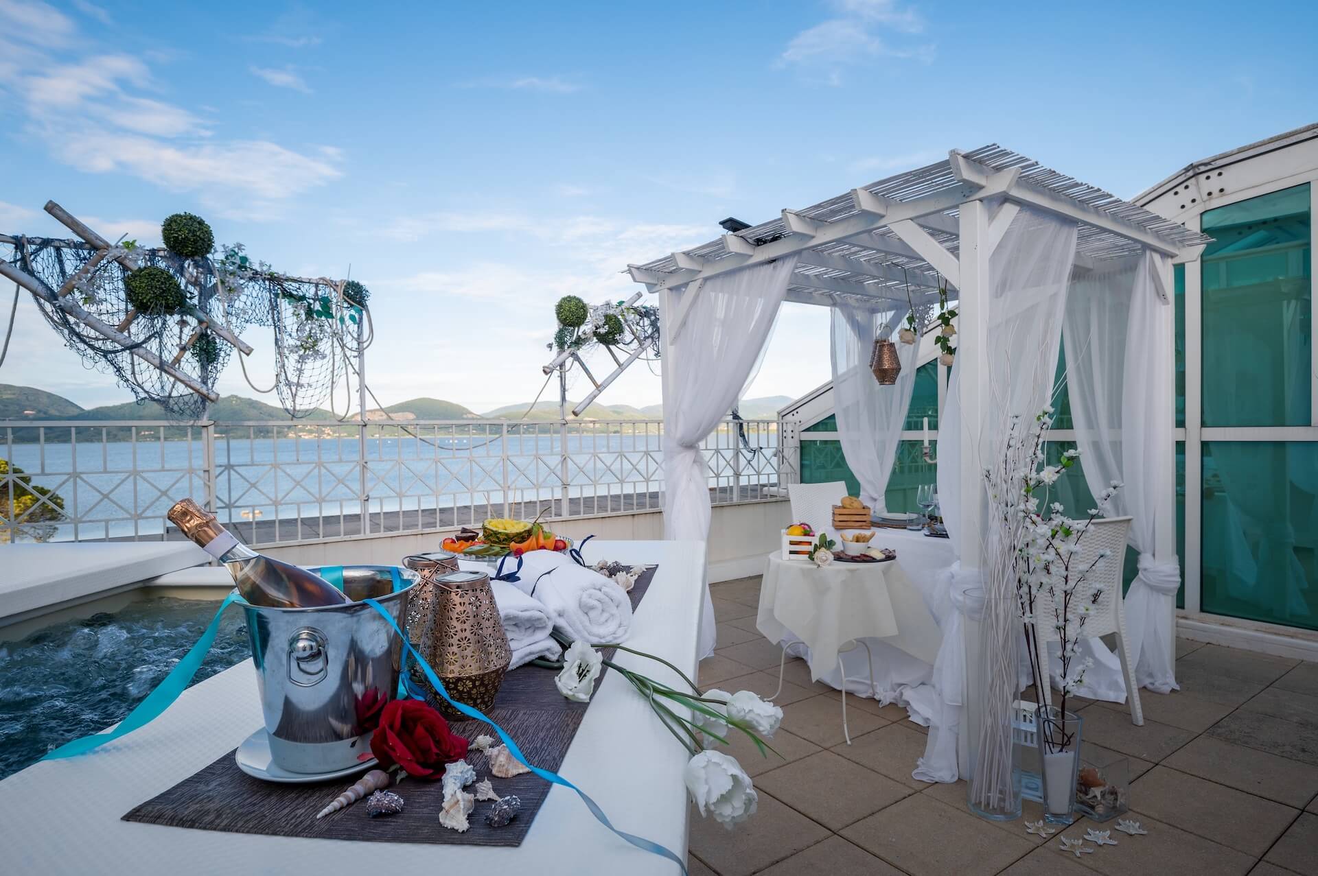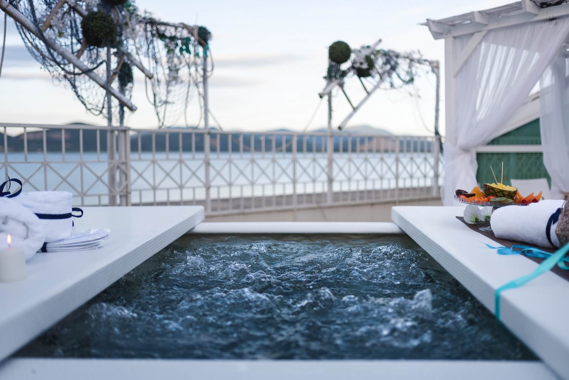 L’oasi Wellness Barbados dispone di una vasca idromassaggio big size, per due persone brevettata per il benessere di coppia, zona relax dedicata con il vostro tavolo, dove poter gustare un aperitivo o una prelibata cena romantica a lume di candela, lettino massaggi.
