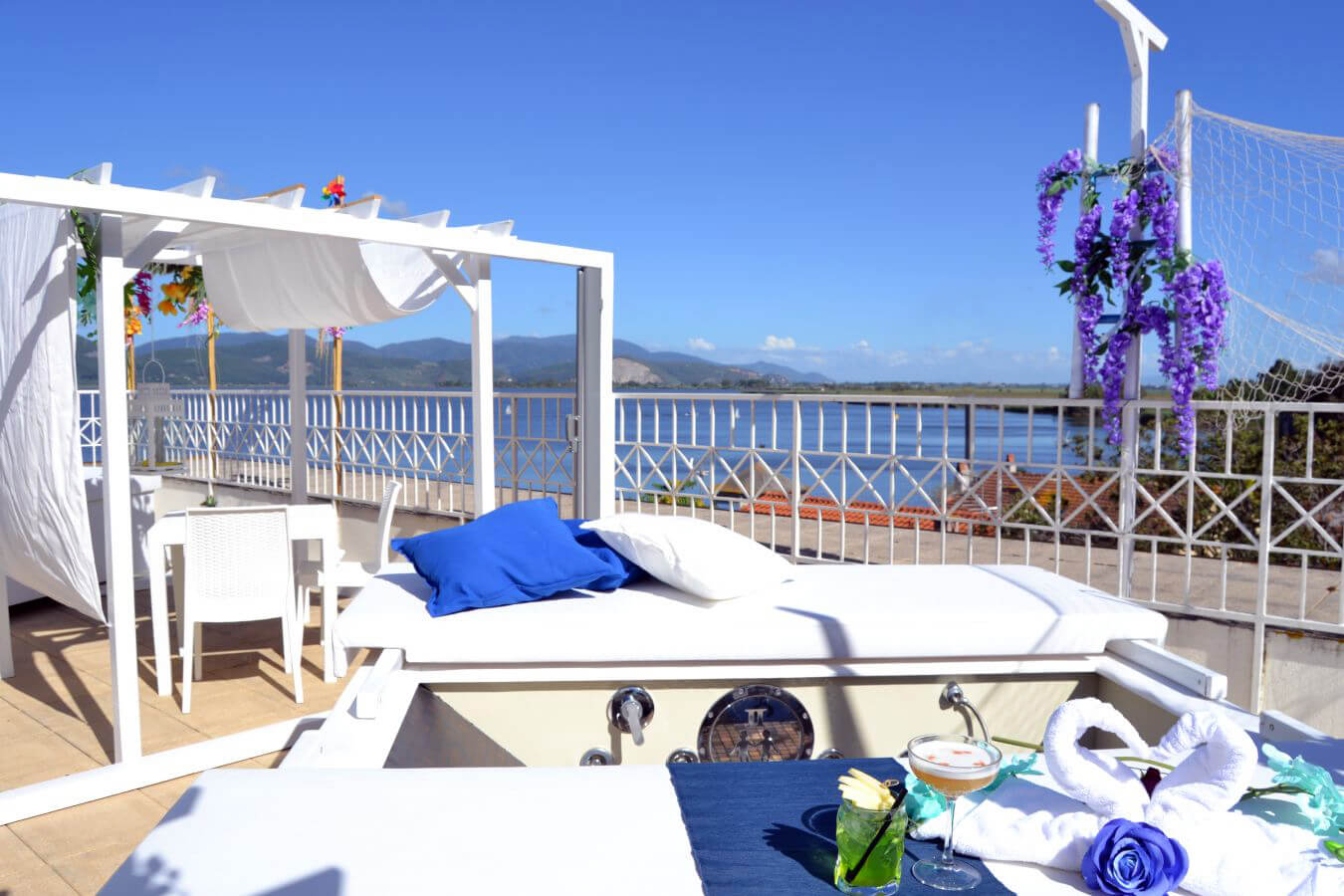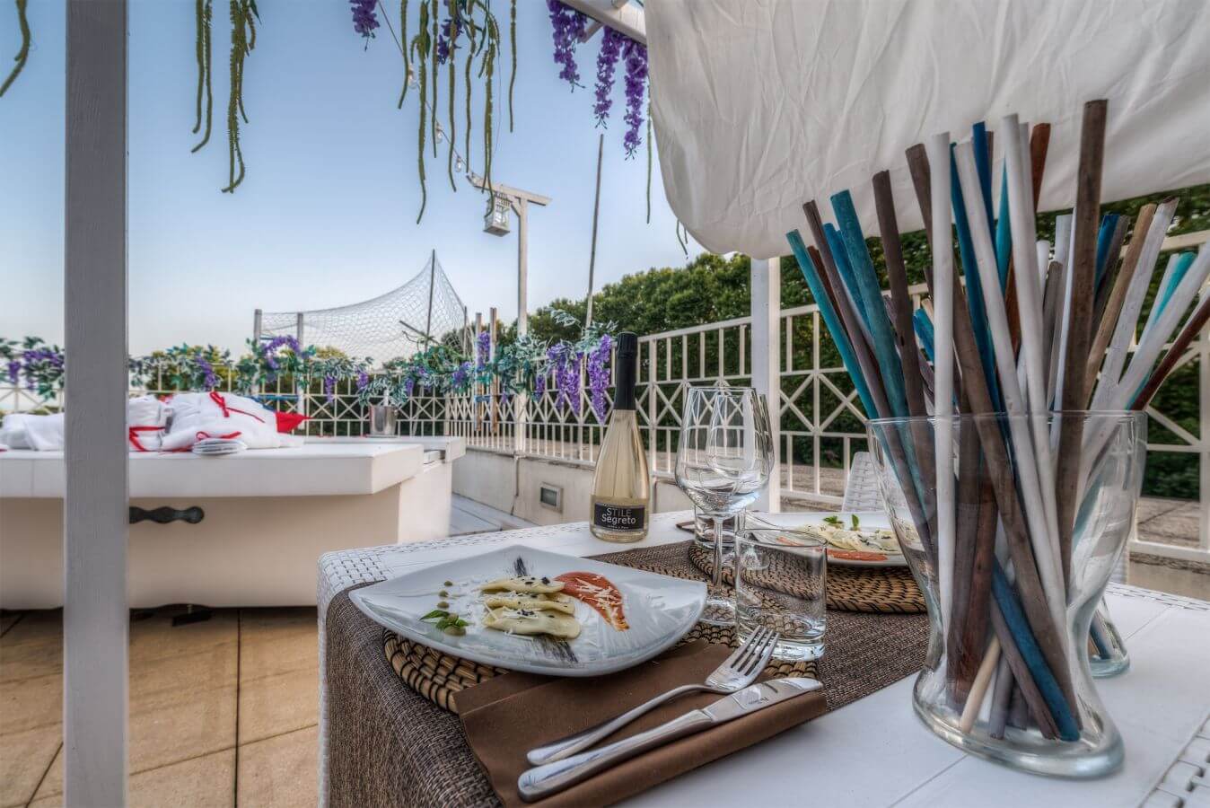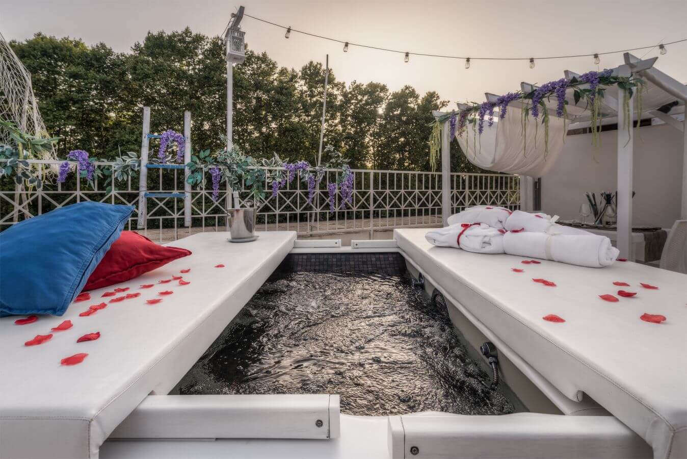 L’ Oasi Wellness “SANTORINI” dispone di una vasca idromassaggio per due persone brevettata per il benessere di coppia e di una zona relax dedicata con il vostro tavolo, dove poter gustare un aperitivo o una prelibata cena romantica a lume di candela.