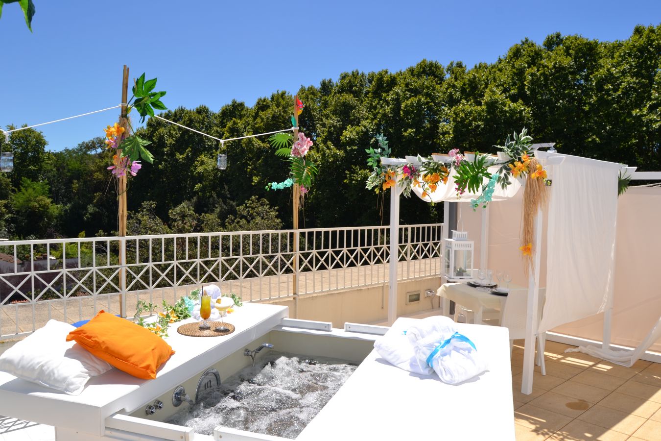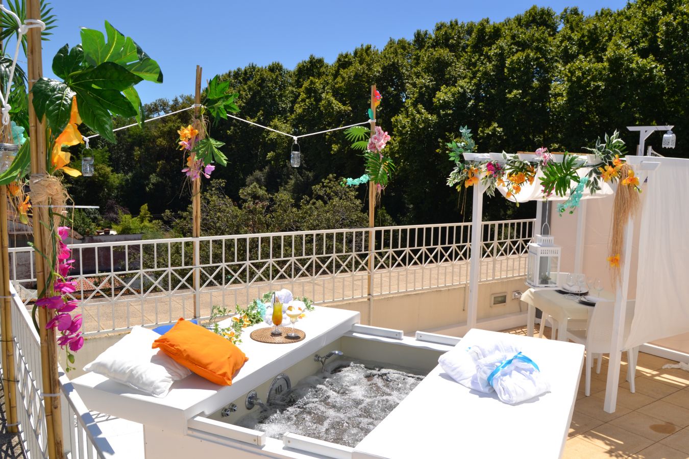 Disposta in una posizione unica ed esclusiva l’Oasi Wellness “TAHITI” dispone di una vasca idromassaggio per due persone brevettata per il benessere di coppia e di una zona relax dedicata con il vostro tavolo, dove poter gustare un aperitivo o una prelibata cena romantica a lume di candela.