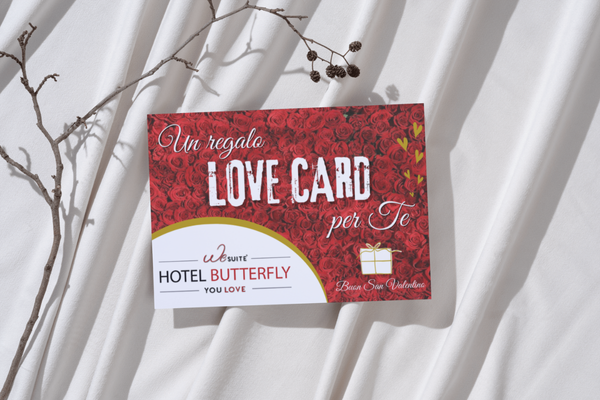 Regala un' emozione con le nostre nuovissime Love Card! La Love card ha validità 12 mesi ed è valida per tutti i Butterfly Hotels. Acquistala e la riceverai per email all’indirizzo da te indicato!